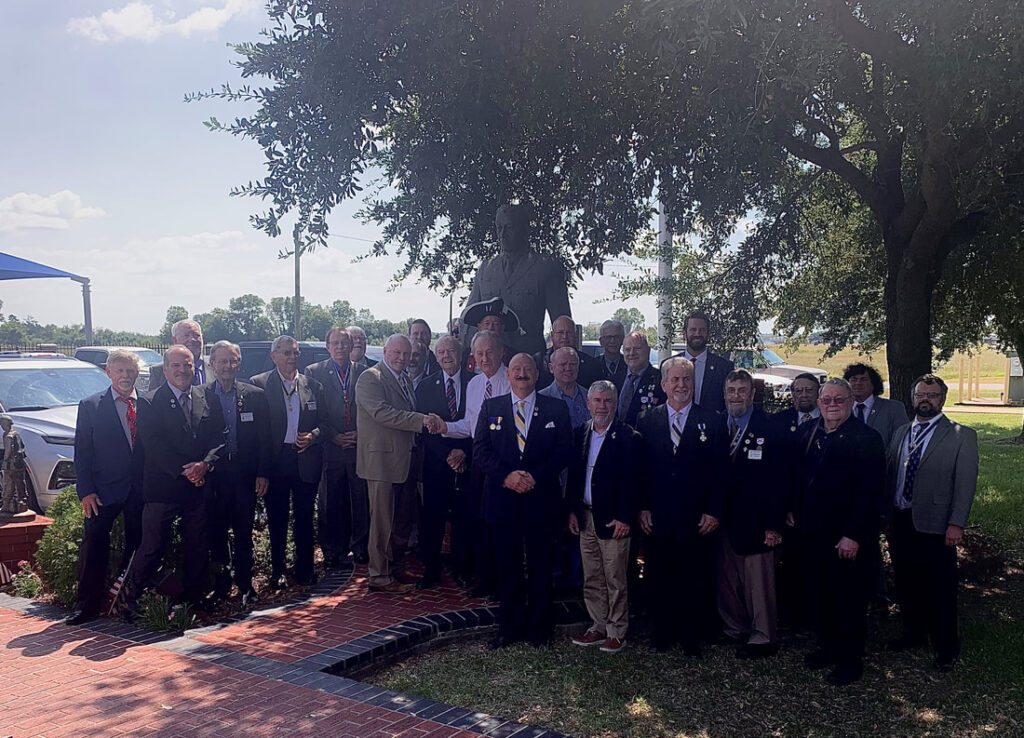 The James Huey Chapter of West Monroe hosted the Louisiana Society Sons of the Revolution Board of Directors meeting on Saturday September 19th at the Chennault Aviation & Military Museum in Monroe Louisiana. The meeting was attended by Southern District Vice-President General, Maj. Bradley T. Hayes, Esq. Pictured are the attendees of the Louisiana Society where their Society President Jeff Nolan who presented a donation from the Society to the Museum. Judge Elvis C. Stout, Chief Operates Officer received the Society’s donation on behalf of Nell Chennault Calloway, CEO and granddaughter of General Claire Chennault.