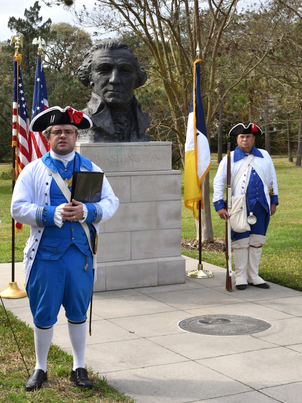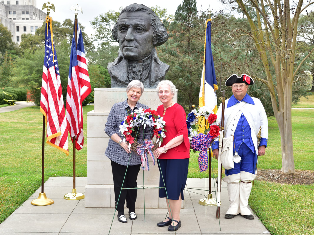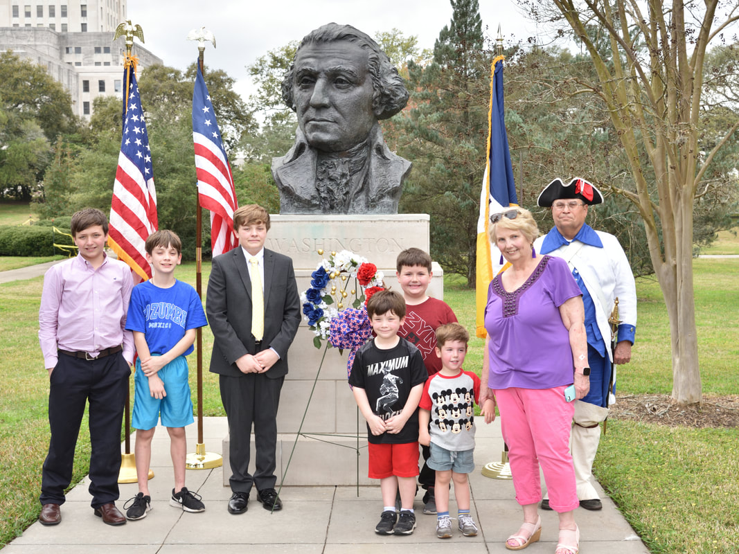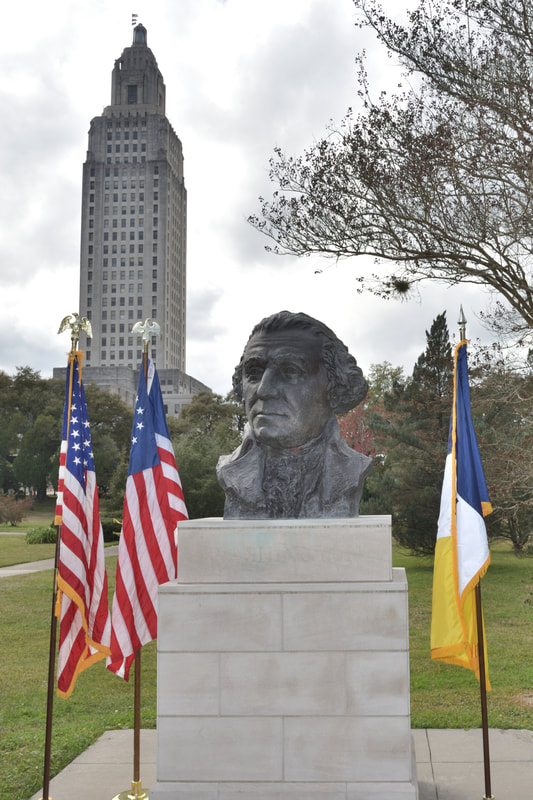 With inclement weather threatening, the General Philemon Thomas Chapter met at the Washington Bust on the LA State Capitol grounds to honor the birth of our first president.