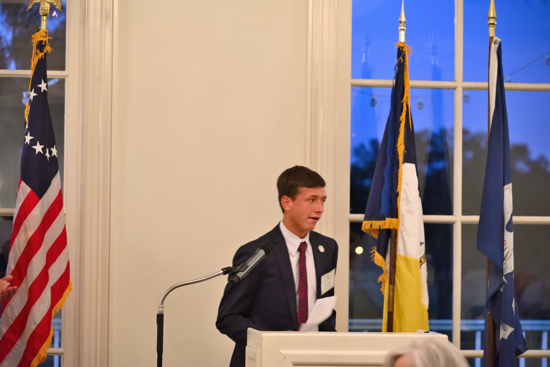 1) The President of GPT, Mitch Pratt welcomed our over 60 attendees and guests and gave a summary of the many public events with Scouting, Veterans burials, ROTC, and other patriotic programs in our area for 2022.  2) Louisiana Society of Sons of the American Revolution State President Jeff Nolen, brought Greeting from LaSSAR and spoke on upcoming events and programs for 2022 and beyond.  3) Cheryl Gott Regent, Louisiana Society Daughters of the American Revolution brought Greetings from the State Society.  4) David Dunlap, Louisiana State Treasurer for CAR and National Relations Committee Chairman for CAR/DAR/SAR/SR, brought greetings from the State Society of CAR.