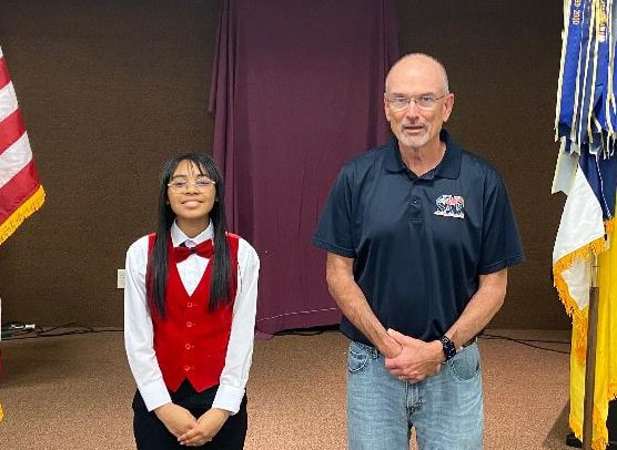 Oration Contestent Leianni Reed-Vital from Lake Charles College Prep won the Chapter Oration Contest and will move on to compete at the LASSAR State Oration Contest in April. From left to right, Leianni Reed-Vital and and President Russ Godwin.